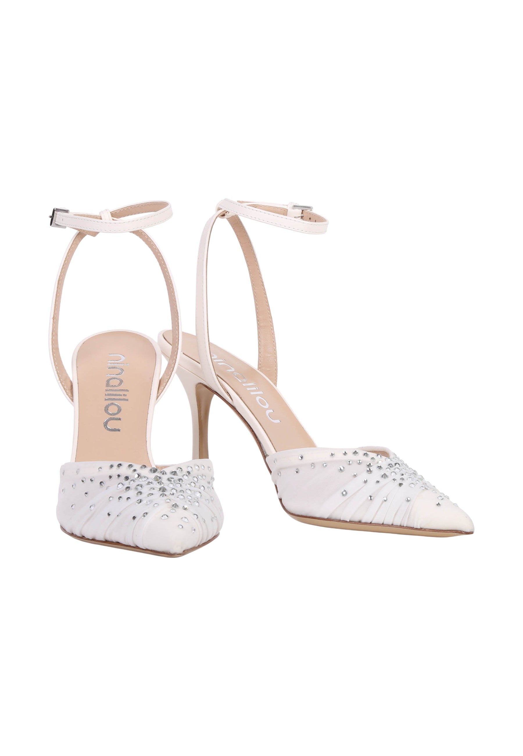 Questa décolleté Ninalilou interpreta una femminilità romantica e senza tempo. La delicata lavorazione in tessuto, illuminata dagli strass, crea un raffinato gioco di trasparenze, avvolgendo il piede con grazia e leggerezza. Le linee pulite ed eleganti donano armonia alla silhouette, mentre il design complessivo esprime un’eleganza eterea e sofisticata. Un modello pensato per momenti speciali, ideale per chi desidera distinguersi con delicatezza, stile e un fascino naturalmente chic.